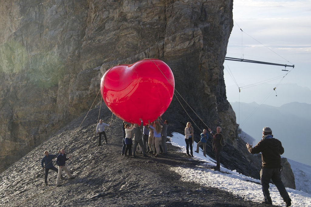 Ein aufgeblasenes, riesiges Herz wir auf Händen getragen. Und das durch die ganze Schweiz, durch die Stadt, über den See, bis auf den vereisten Berggipfel. Im Swisscom Werbespot ist ein vier Meter grosses, rotes Herz die Hauptdarstellerin.